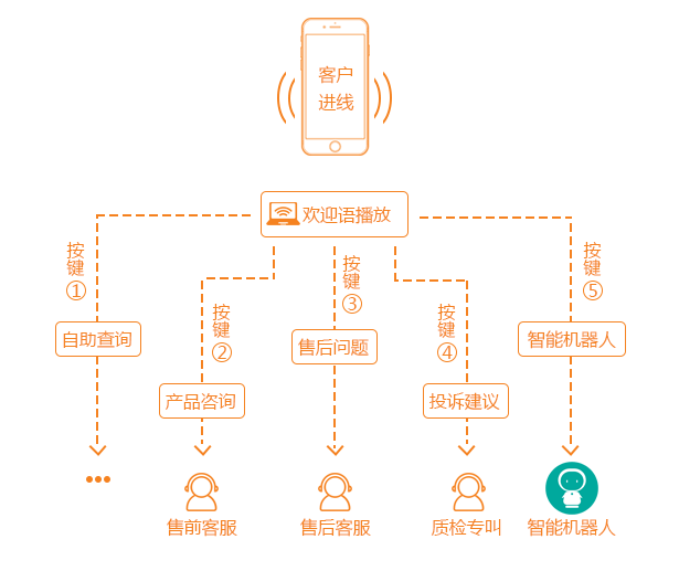 在呼叫中心系统内部可以自定义设置语音内容,然后用事先录好的语音来引导客户根据语音按键提示进行操作,IVR智能语音导航目前最常见的使用场景就是进行满意度调查和订单状态查询。